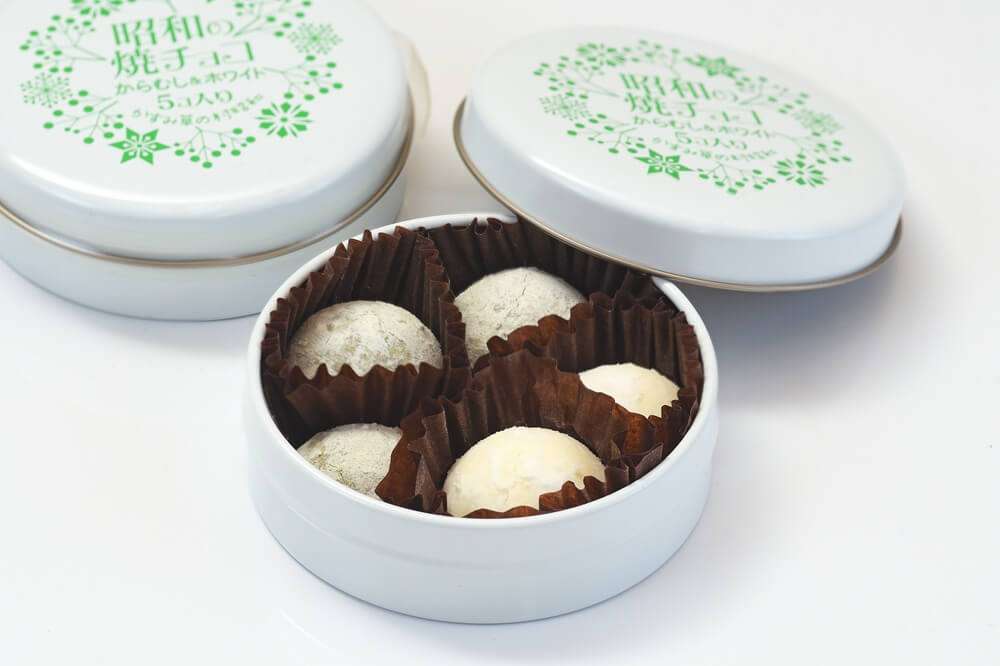 チョコは1つ1つ手作りでからむしチョコ3個、ホワイトチョコ2個の5個入りです。