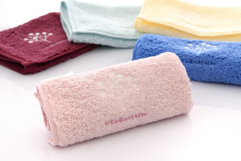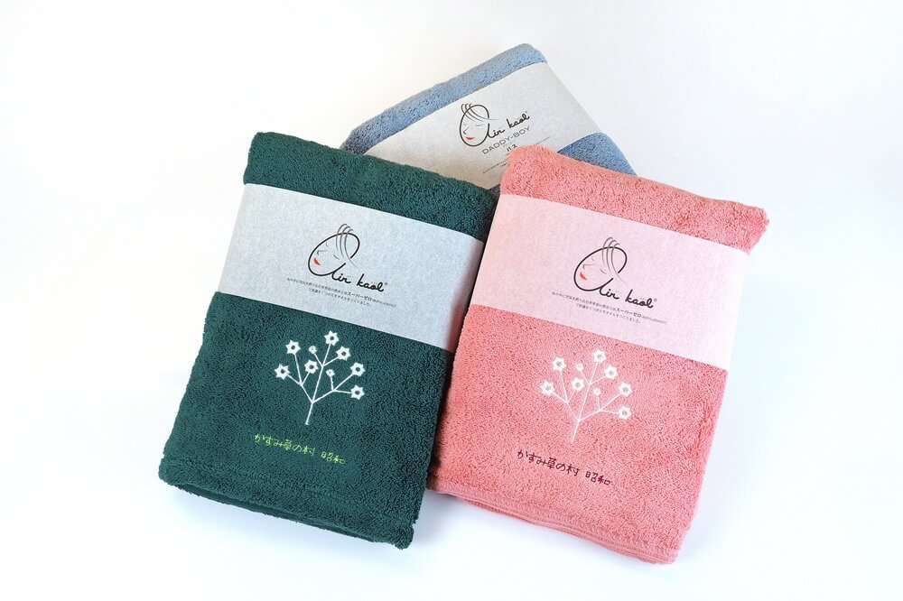 特許技術が生んだ【浅野撚糸】(福島県双葉町)さんの【エアーカオル】に、昭和村の【からむし】の糸で日本一の【昭和かすみそう】を刺繍しました!