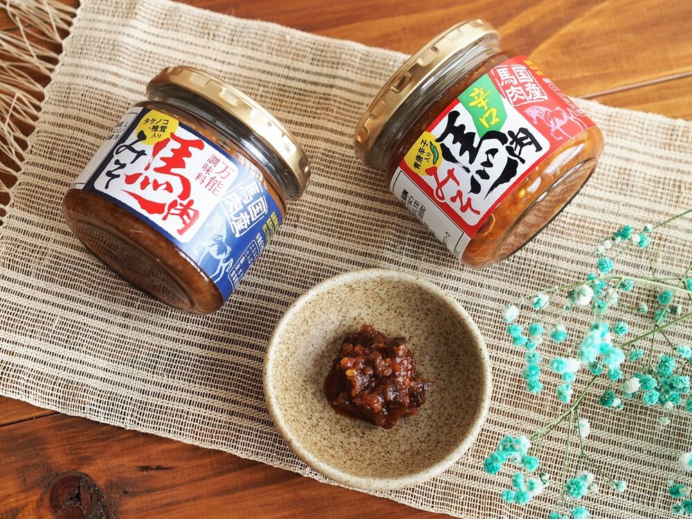 青唐辛子とにんにく、生姜を加えた辛口馬肉みその2種類!