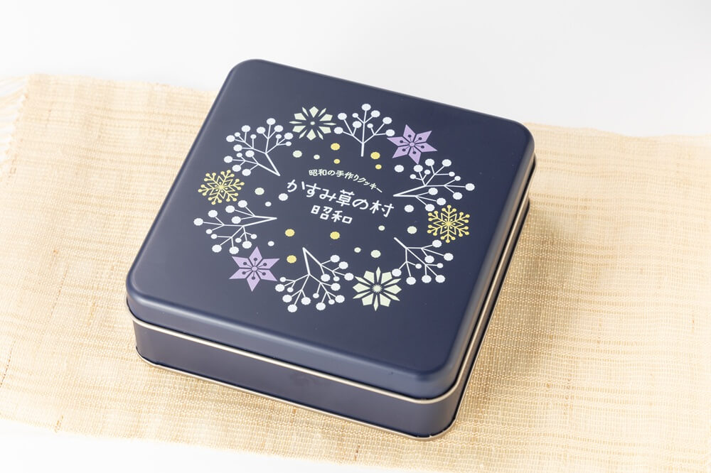 昭和村産のお米や、奥会津産の材料を使用して作る、村人手作りのクッキーを、日本一の昭和村かすみ草をイメージした缶に詰めました。手作りのため週10缶の限定販売です。